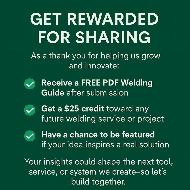 Whether it’s a fabrication issue, a custom tool you wish existed, or a welding system improvement—Progressive Welding Solutions wants to hear from you.
